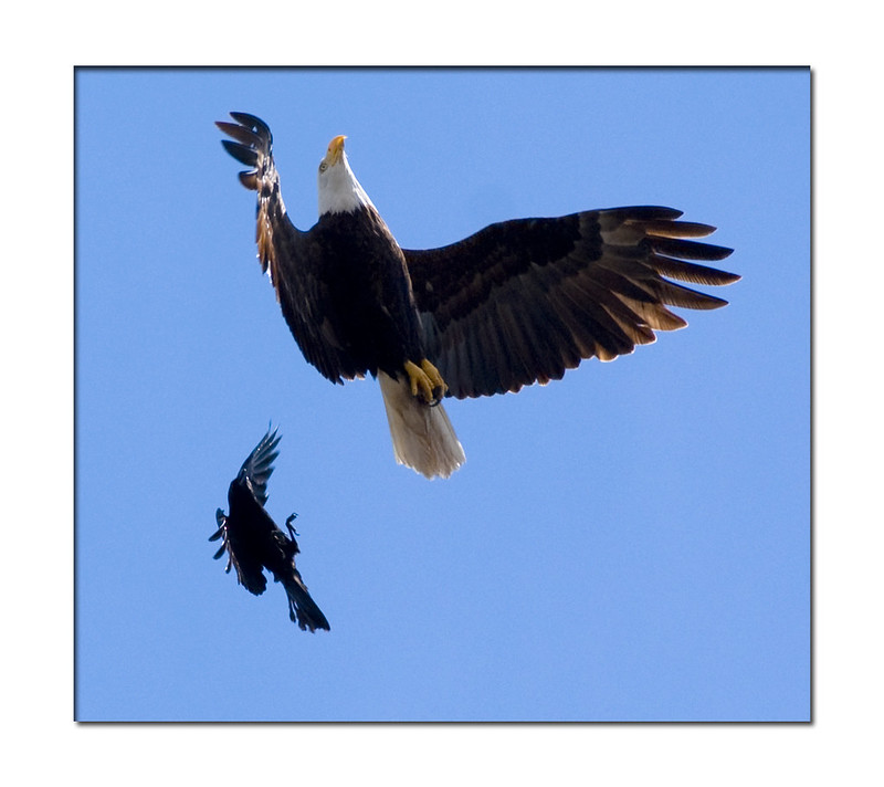 The Eagle has very few predators, very few things will attack an Eagle. There are a lot of birds that will try to interferer, try to cause havoc around the Eagle that’s trying to protect its nest. The Eagle will eat the eggs of other bird’s nests, they will eat those birds. If they get in front of them they will catch them and eat them. But there is one bird that gives an Eagle a fit. And that’s a crow.