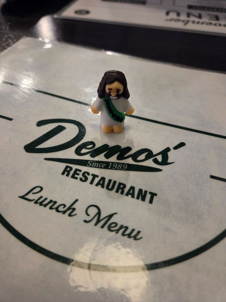 But so far, I left a little Jesus to our waitress, to a cashier at an antique place, and a cashier at a food place. The first one I didn’t get to see, the second one I saw, but didn’t get to hear all her kind words, and the third I got to see and hear how she loved it!